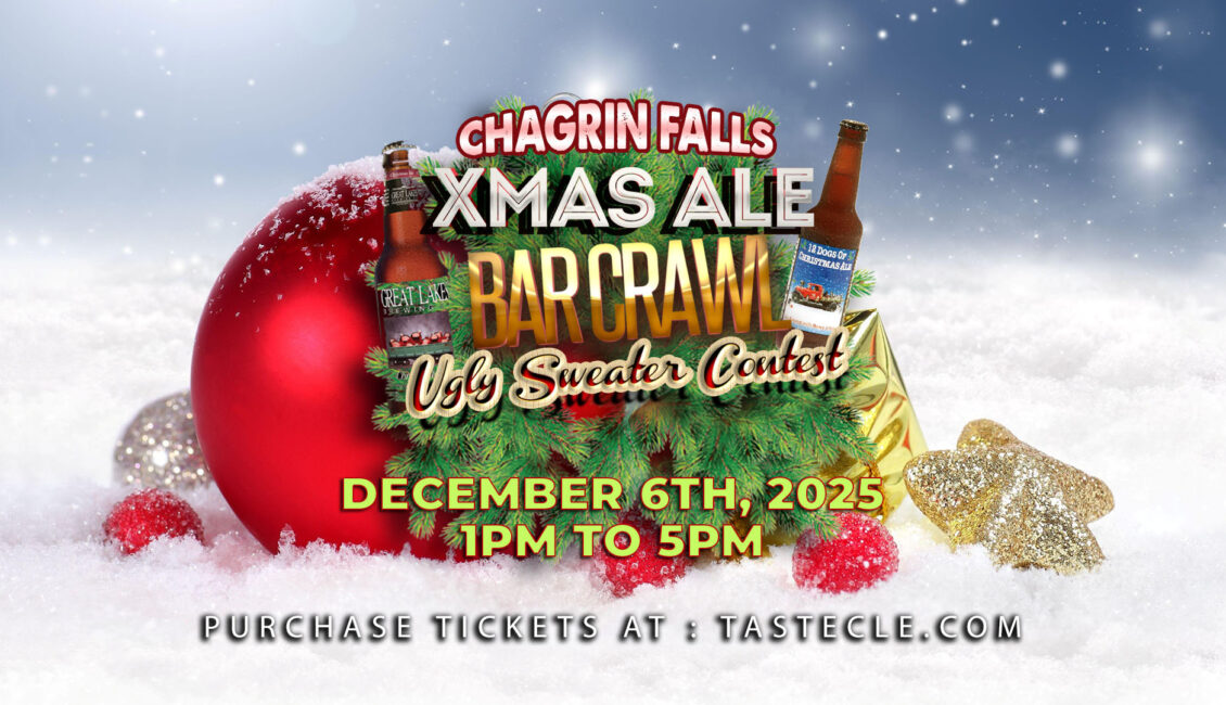 Come on out to Chagrin Falls for an afternoon of fun and holiday cheer. Ticket holders will get a welcome xmas souvenir at check in and as you visit the various bars/restaurants in Chagrin Falls, you’ll get your glass filled with all kinds of specialty Christmas ales or wine.